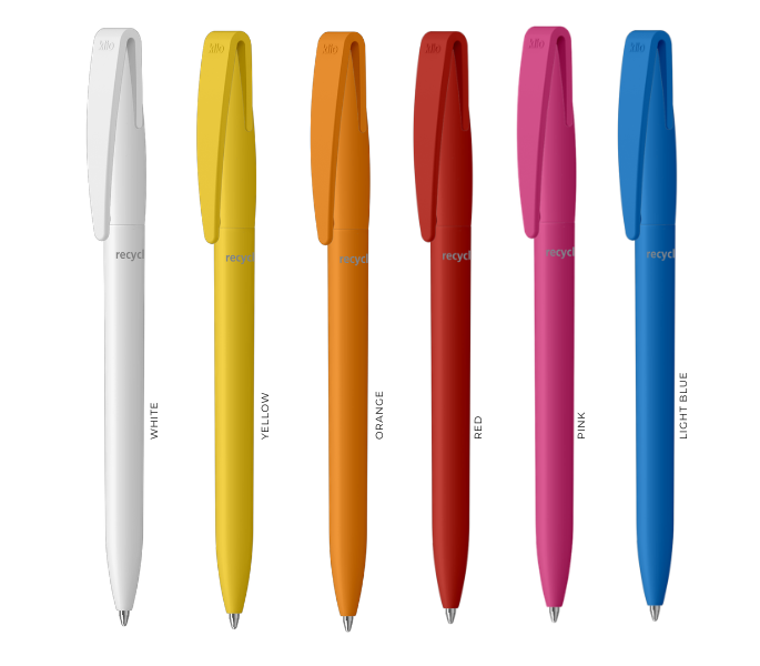 Made in Germany. This twist-action ballpoint matt pen is stylish, functional, and environmentally friendly. The barrel, upper part, and clip are made from Recycled ABS plastic. The mechanism of the pen is made from recycled plastic (rPOM), while the refill tubes are made from recycled polypropylene (rPP). Mix and match the components with the 14 in-stock matt colours, and make them truly unique to your brand.